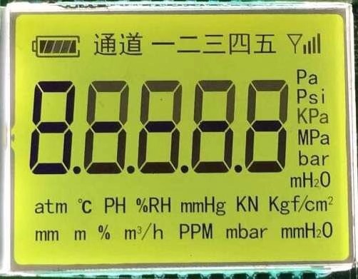 (1)此顯示屏采用了5位段碼屏,帶有背光燈,背光可通過按鍵點亮,當設備進入休眠狀態(tài)后,屏幕將自動關閉,如需打開可通過開關屏按鍵打開,按鍵停止操作60秒后設備即又進入休眠狀態(tài);