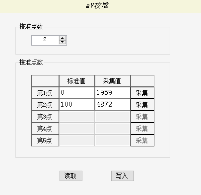 3)每點輸入標準值,點擊采集按鈕采集標準值對應的AD值。
