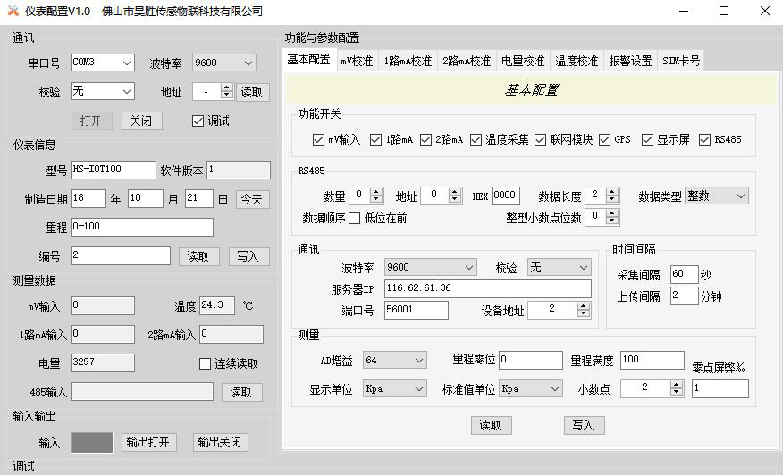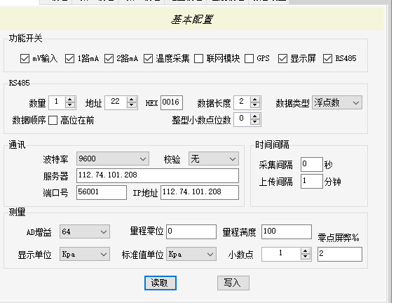 基本配置包括:設備功能開關、通訊、測量信息配置等。