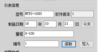 修改配置信息:在儀表信息面板輸入配置信息后點寫入按鈕。