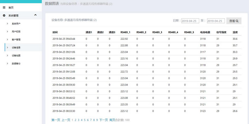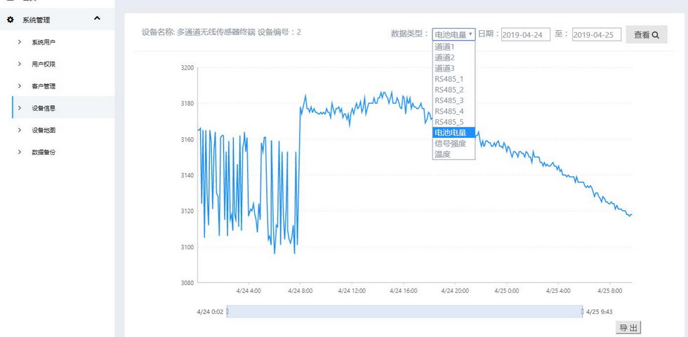 通道數(shù)據(jù),電池信息,網(wǎng)絡(luò)狀態(tài),信號強度,報警信息等 |