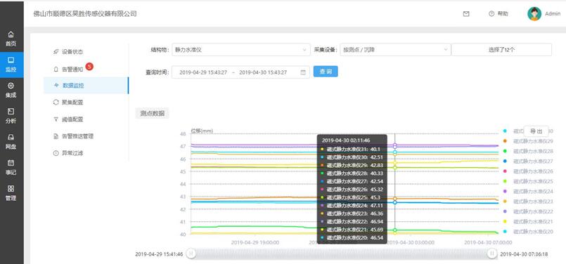 磁致伸縮式靜力水準儀是由一個高精度的磁致伸縮液位計,加上儲液罐、液位浮子、保護罩、調(diào)平支架、通聯(lián)氣、水管等部件組成。