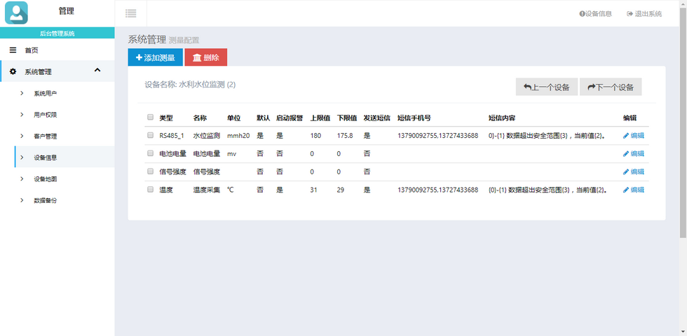 15、測點防盜報警短信提示