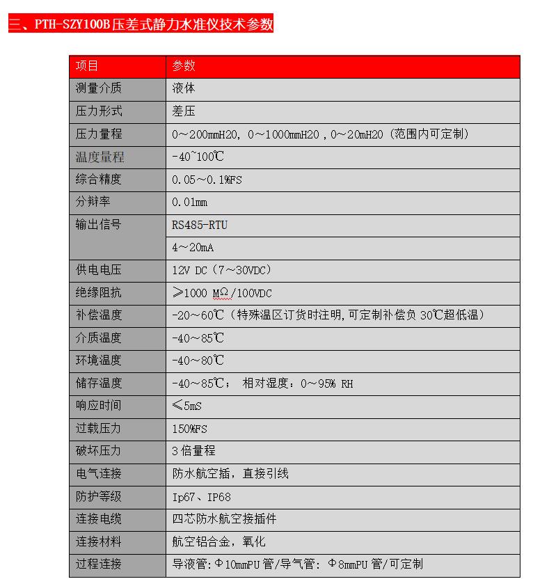 l 產(chǎn)品訂購和使用前請詳細閱讀《PTH-SZY100B壓差式靜力水準儀體使用說明書》。