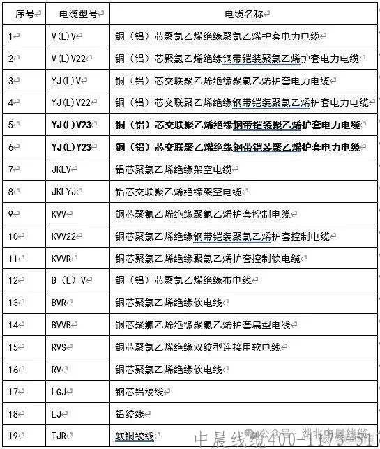 注:序號5和6型號不同中文名稱卻一樣,所以電纜型號更能清楚的描述電纜結構。