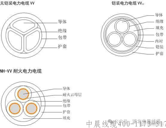 以下是電力電纜各部分結構材料的代號